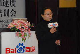 寒流入侵,涼風習習,吹不涼百度人暖暖的心田。2008年11月28號,營銷加速度——百度營銷專家培訓會在我司三樓商務會所拉開了帷幕。眾多企業(yè)家朋友齊聚一堂,敞開心扉,交流分享。我司美女主持張捷女士擔任會議主持,貼心的問候,朝氣的笑容很快帶動了會場的氣氛。我司丁溱平女士和盧全女士擔任此次會議的主講,兩位主講精彩而深動的演講吸引了在場的每位客戶。